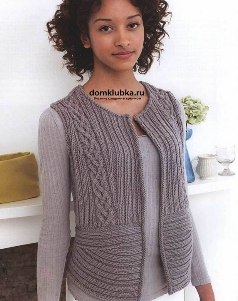 Жилетка женская вязаная спицами — удлиненная модель Вязаные безрукавки успешно заменяют свитера или являются составными классических костюмов. Их можно изготовлять спицами или шить. Для начинающих рукодельниц предлагаются целые мастер-классы по самостоятельному созданию оригинальных жилеток. Более опытные в этом деле женщины применяют схемы сложнее.