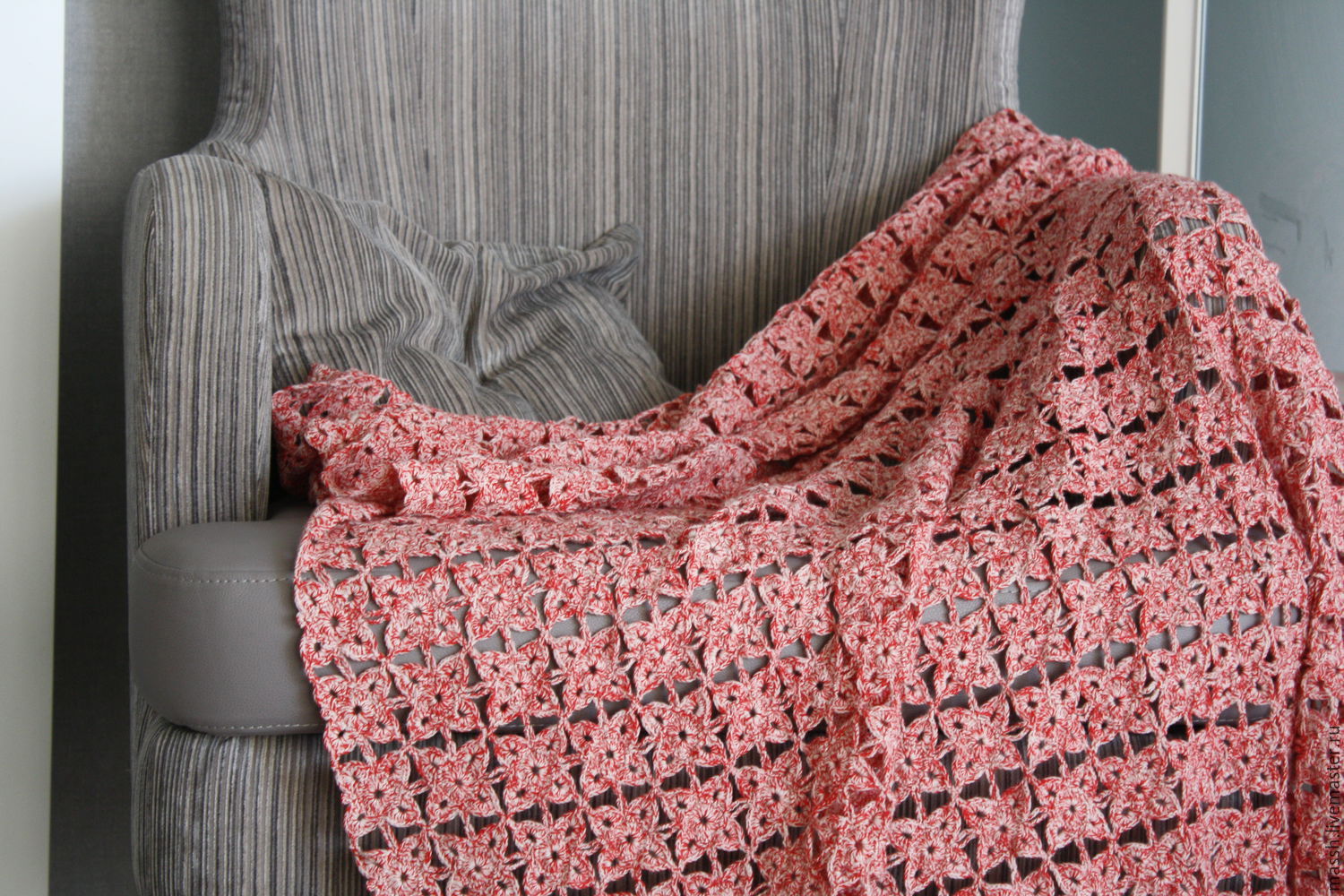Уютный плед на диван ручной работы с интересным рисунком на основе 1 базового и нескольких дополнительных цветов