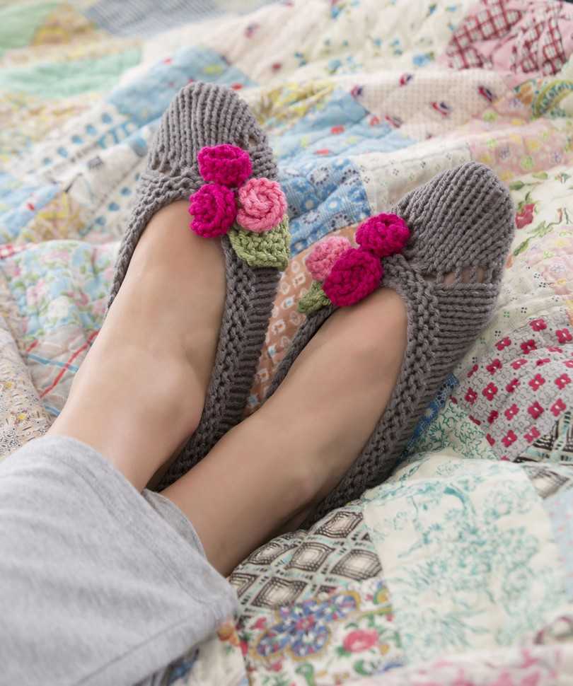 Домашние тапочки не обязательно должны быть простыми и скучными. Свяжите себе или своим близким красивый аксессуар с декором и встречайте гостей в нарядных и модных тапочках. Простой способ вязания этих тапочек очень похож на то, как мы вязали пинетки крючком для начинающих. Но внешняя простота касается только подошвы. Необычный цветочный дизайн прибавляет аксессуару изысканности.