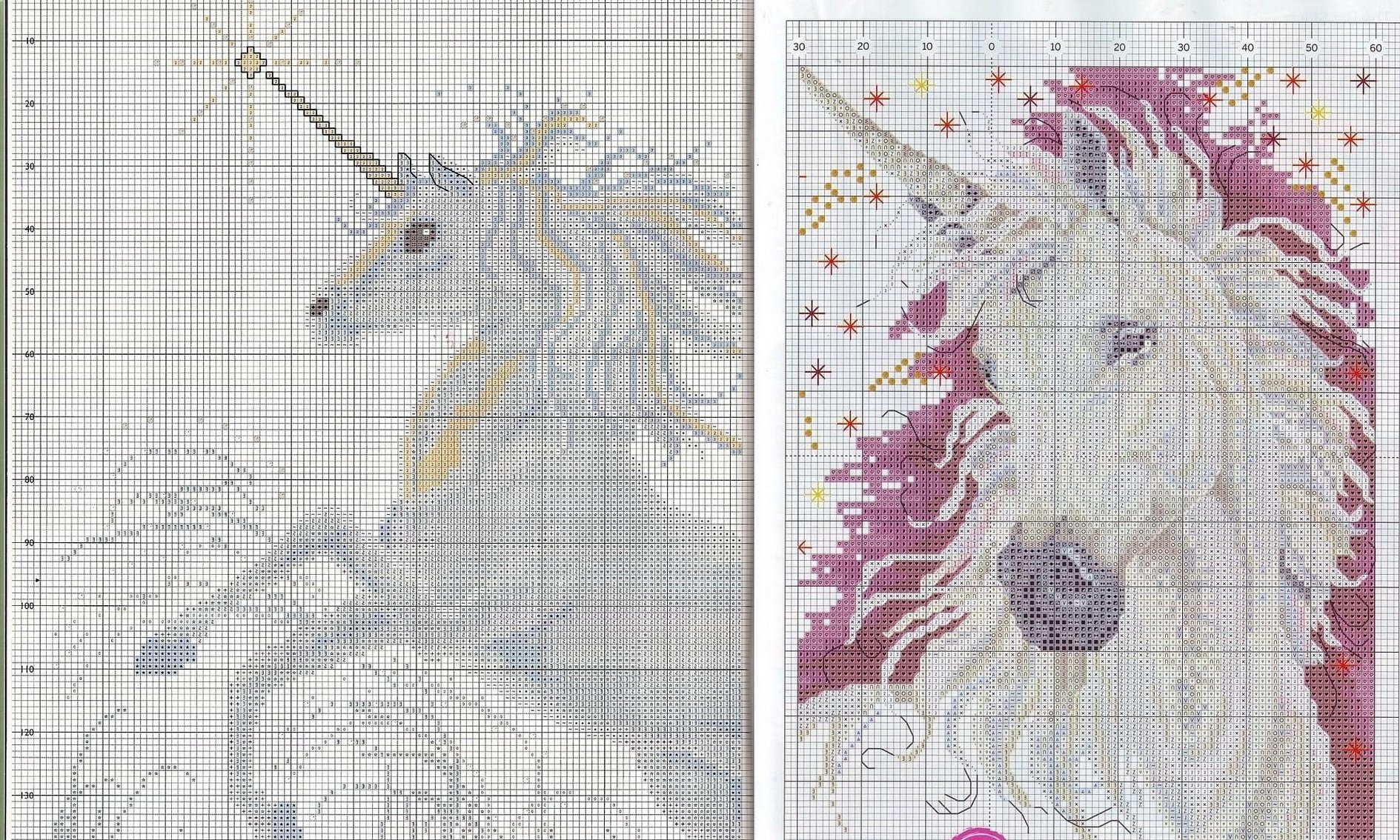 Вышивать его следует на канве из трикотажа. Однако если вышивка осуществляется во время беременности, то единорог поможет только обрести счастье материнства.