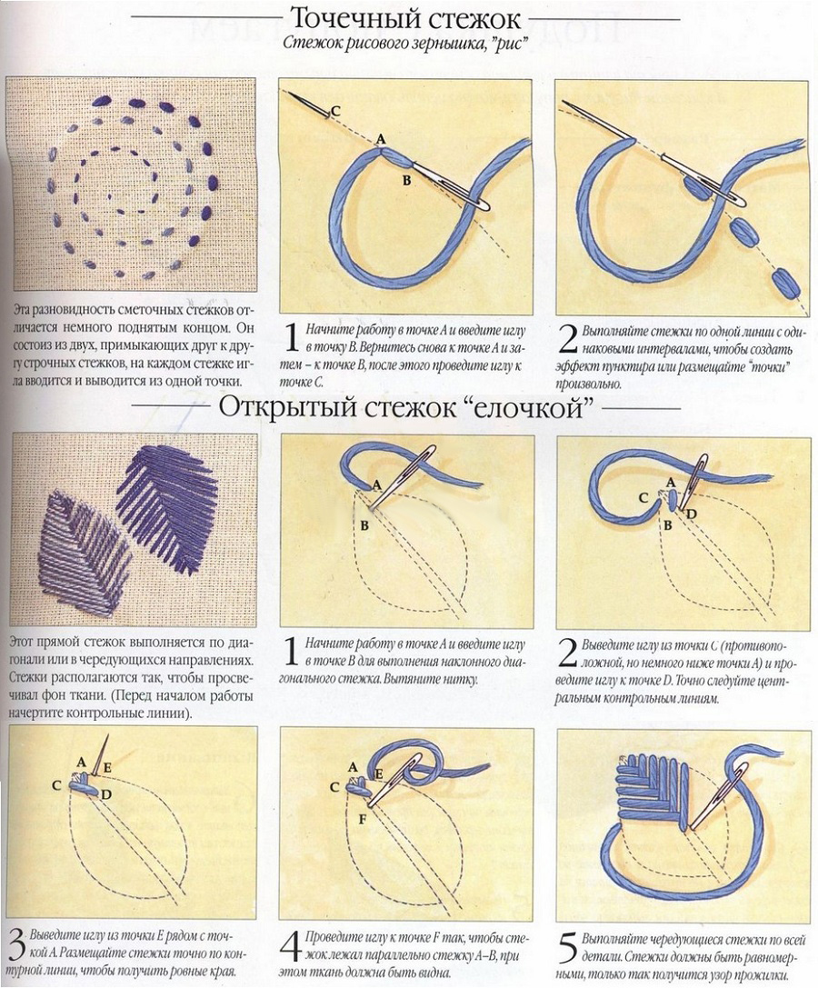 Клинообразные и шевронные стежки можно вышить по бокам рисунка, заполнив пустое пространство. Точечный в готовом виде похож на кофейное зёрнышко, зерновой используется для эффекта светотени внутри детали.