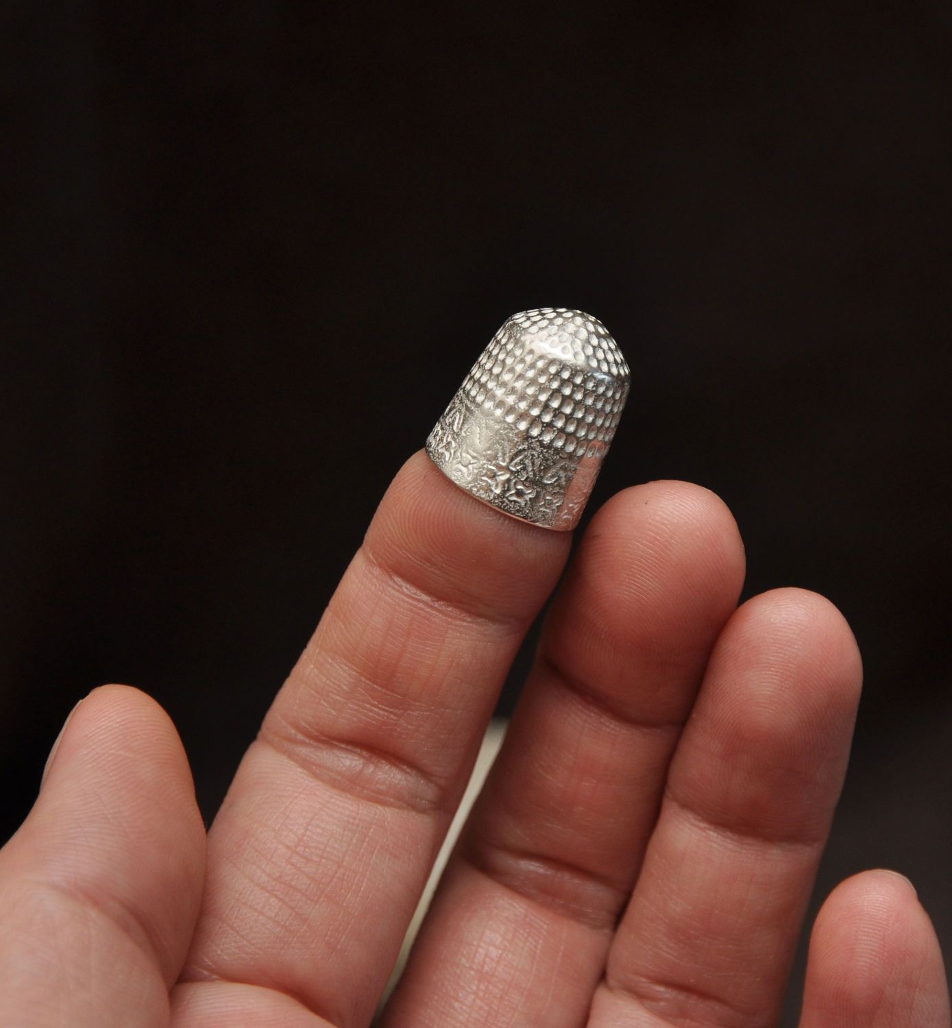 При вышивании приходится всё время проталкивать иглу через полотно, что ранит подушечки пальцев. Приучите себя к напёрстку! Через короткое время вы перестанете замечать его, а кончики пальцев останутся целыми.