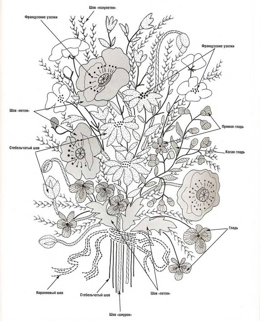 Шаблон для вышивки лентами Букет цветов