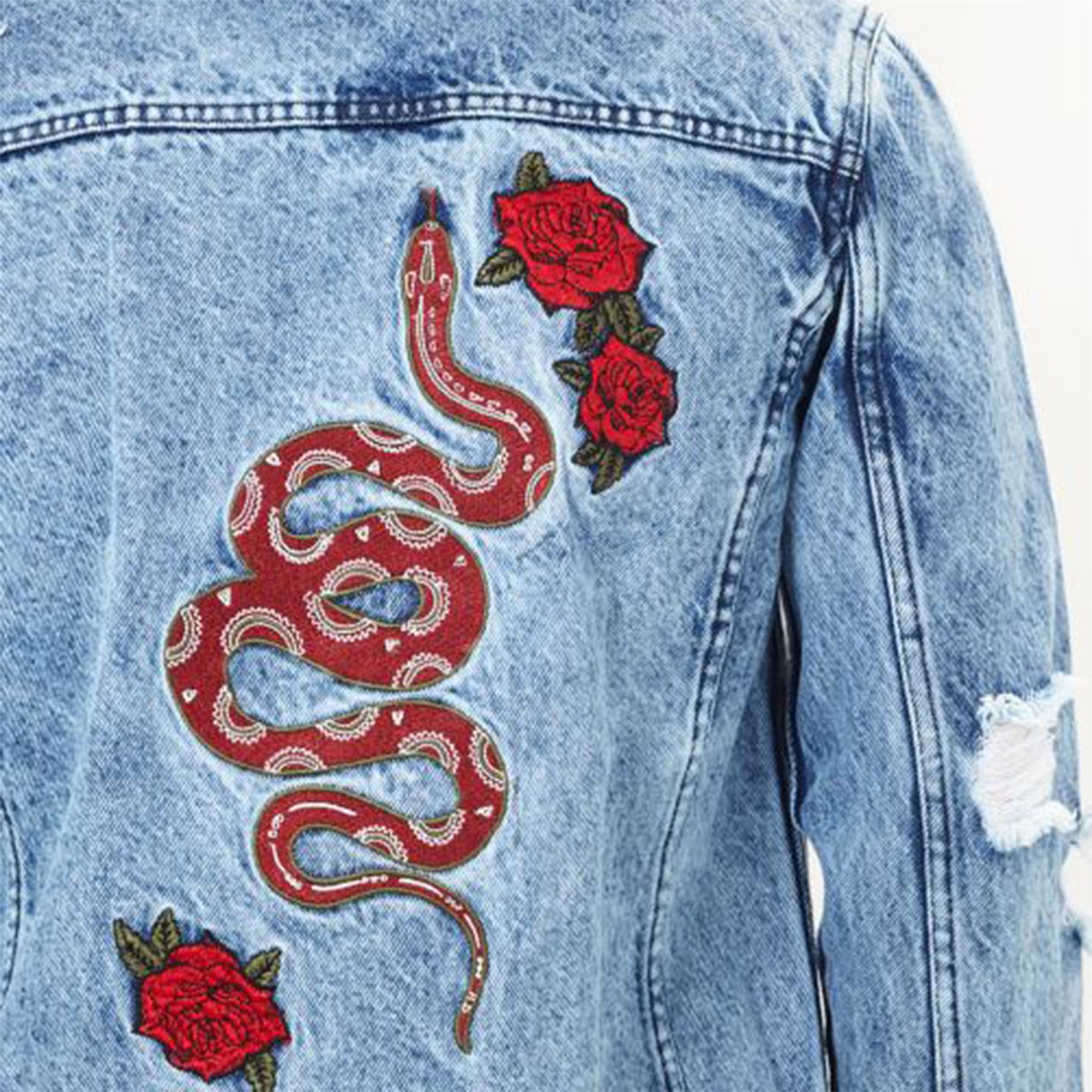 Изделия с машинной вышивкой на джинсовой куртке своими руками сегодня особенно пользуются спросом. Они идеально смотрятся на джинсах и куртках. Множество брендов ее используют, чтобы сделать красивыми вещи. Не нужно думать, что такой декор является только женским. Он бывает мужским. Главное сделать более брутальным рисунок. Сделать украшение можно для белой куртки, черной косухи, удлиненной джинсовки, зеленой парки и бомбера хаки.