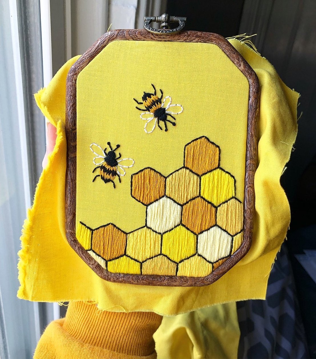 Медовые соты — вышивка по вязаному полотну, имитирующая пышные буфы. Такая техника применяется от отделки горловины, манжетов, а также низа изделия. Чаще всего для работы применяются нити того же тона, что и сама вязаная вещь.