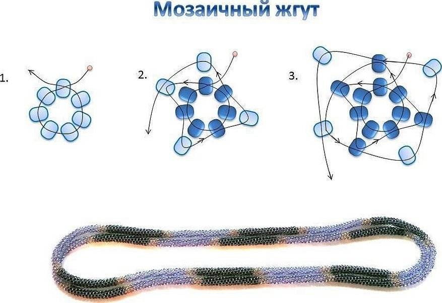 Чтобы плести жгут на леске, потребуется схема плетения жгута из бисера и дополнительно такой инструмент, как специальная игла. Различают несколько разновидностей плетения бисерного жгута: